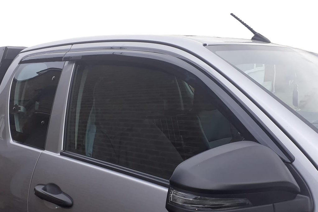 Made by Auto Clover from high quality black tinted SAN plastic, this 4-piece Wind Deflector set for the Toyota Hilux 2016+ Extra Cab is a high-quality product, beautifully designed to fit perfectly. Not only do they look great but have been tested to reduce wind noise* as well as all the usual functionality wind deflectors offer.